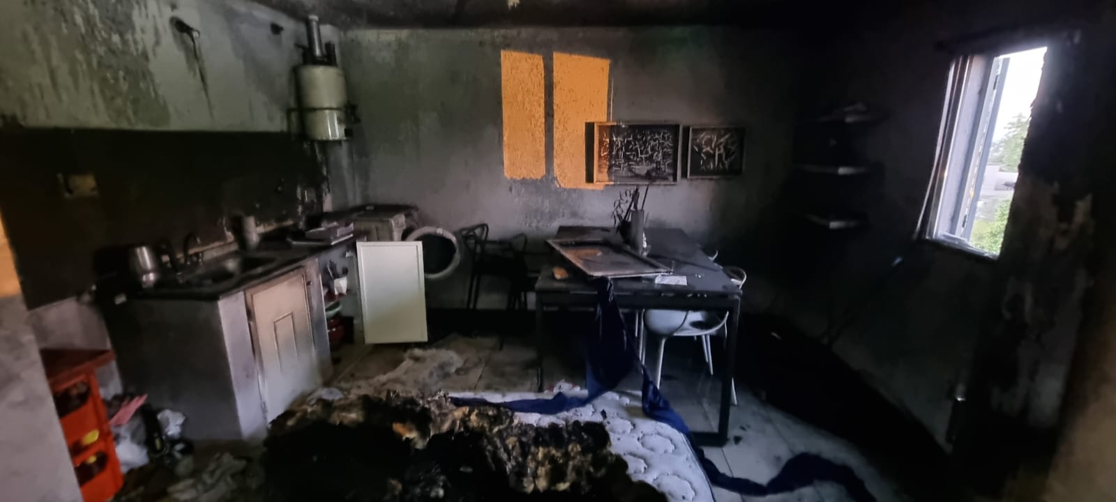 En el lugar del incendio se registraron daños en la cocina comedor donde se quemo un colchón de dos plazas.