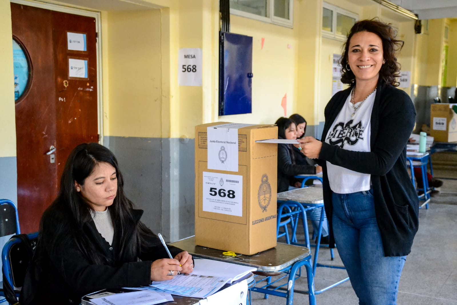La precandidata suplente a diputada nacional por Unión por la Patria, Victoria Álamo, emitió su sufragio en la mesa 568 de la Escuela de Comercio "Juan Facundo Quiroga", de Chilecito.