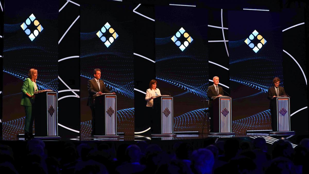 El domingo pasado, en el primero de los dos debates obligatorios, que se realizó en Santiago del Estero, Massa, Bullrich, Milei, Schiaretti y Bregman habían presentado sus proyectos sobre "Economía", "Educación" y "Derechos humanos y convivencia democrática", éste último, al igual que "Desarrollo humano, vivienda y protección del ambiente", los ejes temáticos elegidos por la participación ciudadana.