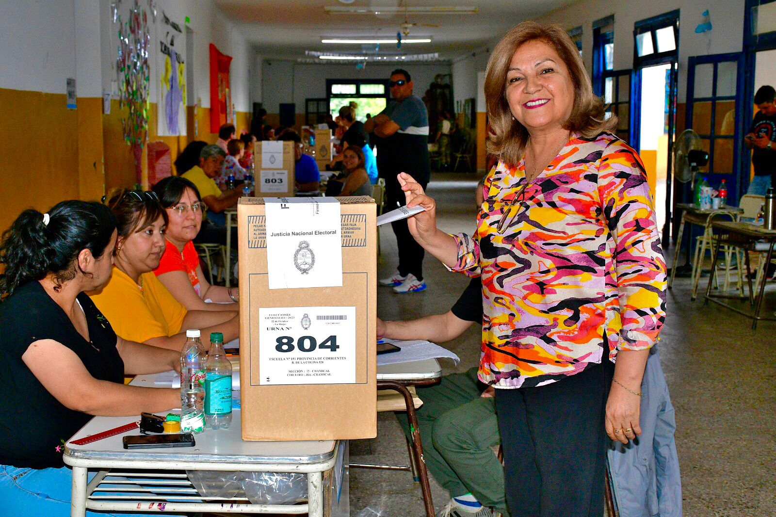 La jefa comunal del Departamento Chamical, Dora Rodríguez, emitió su voto pasadas las 16 horas de este domingo, en la Escuela N 151 "Provincia de Corrientes"..