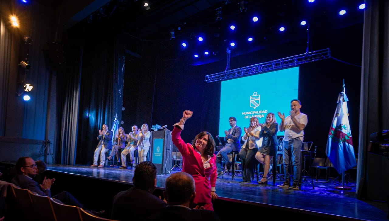 La jefa comunal estuvo acompañada en el escenario por los integrantes de su Gabinete que fueron artífices en el cumplimiento de metas y objetivos trazados en 2019, cuando se consagró como la primera intendenta mujer del Departamento Capital y la primera en alcanzar el palacio Ramírez de Velasco desde un espacio no justicialista desde 1962.
