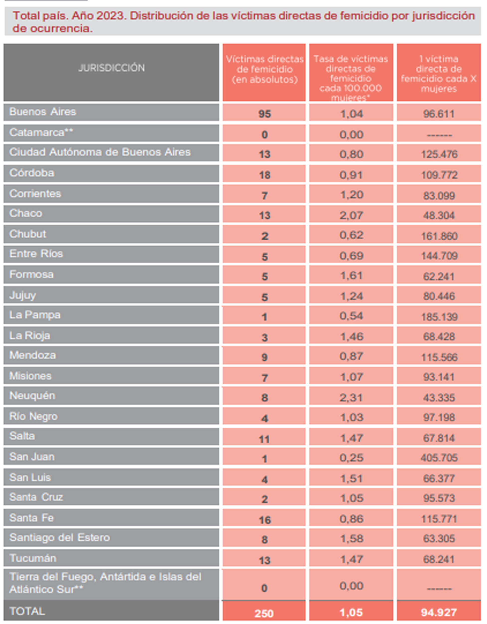 En La Rioja, durante el periodo mencionado, se registraron oficialmente 3 femicidios.