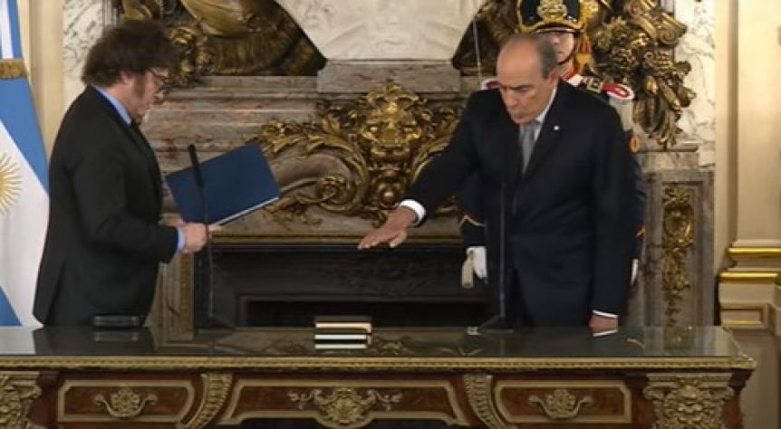 El presidente Javier Milei le tomó juramento Por Dios, la patria y los santos evangelios a Guillermo Francos como jefe de gabinete en reemplazo de Nicolás Posse.