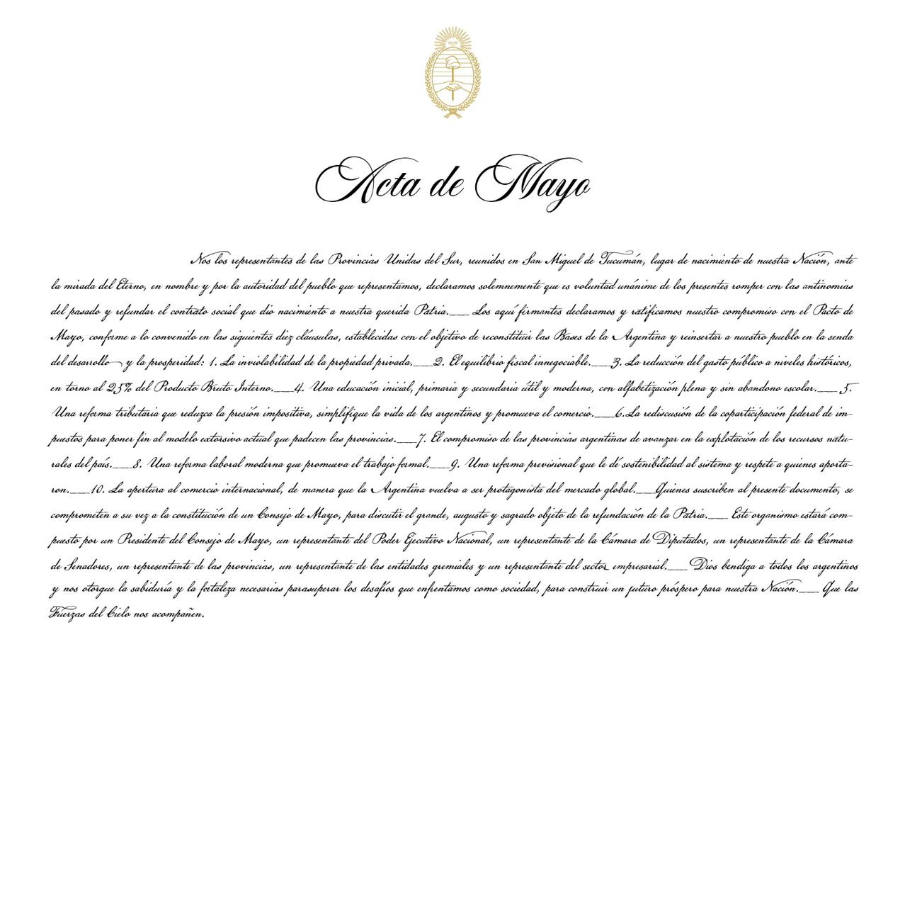 Los gobernadores firmantes del Pacto de Mayo que incluye un decálogo de puntos en los que el Gobierno Nacional considera claves para el país.