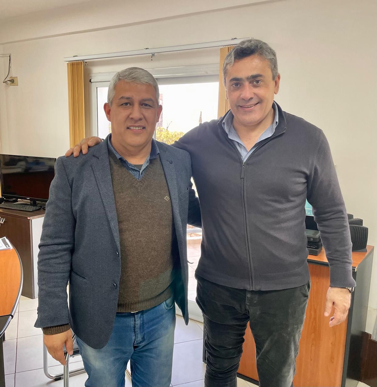 El titular de AJALaR Ramón Vera junto a Javier Cobresí, presidente de La Rioja Telecomunicaciones, se reunieron para evaluar posibilidades técnicas de restringir el acceso a sitios de juegos online en las escuelas de la provincia. Las autoridades consideran urgente avanzar con alternativas para frenar los juegos y apuestas virtuales.
