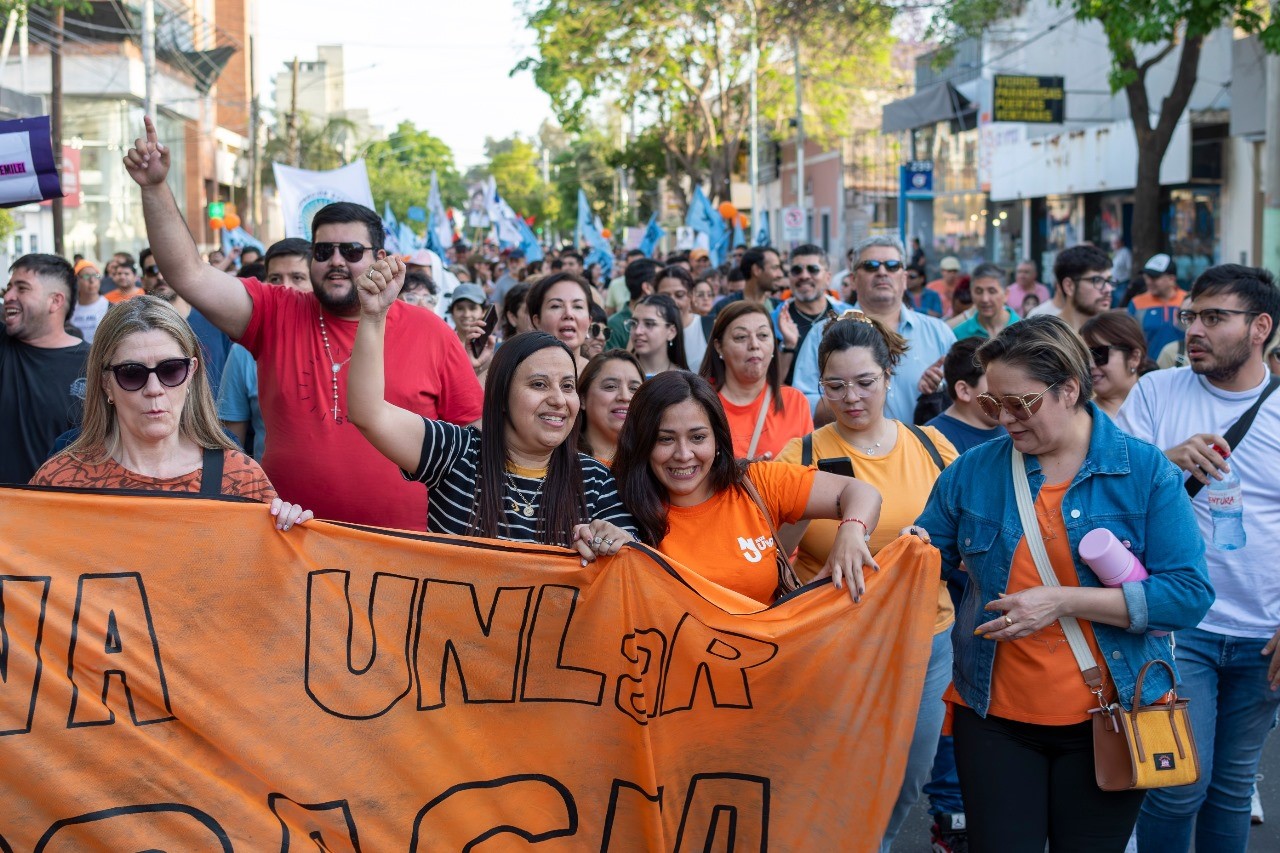 La candidata a rectora de la Universidad Nacional de La Rioja, del Movimiento "Nueva UNLaR" Natalia Álbarez Gómez, marchó este miércoles junto a la comunidad riojana y consideró que "es muy importante defender la universidad pública; porque, independientemente del color político o religión, la universidad pública nos une".
