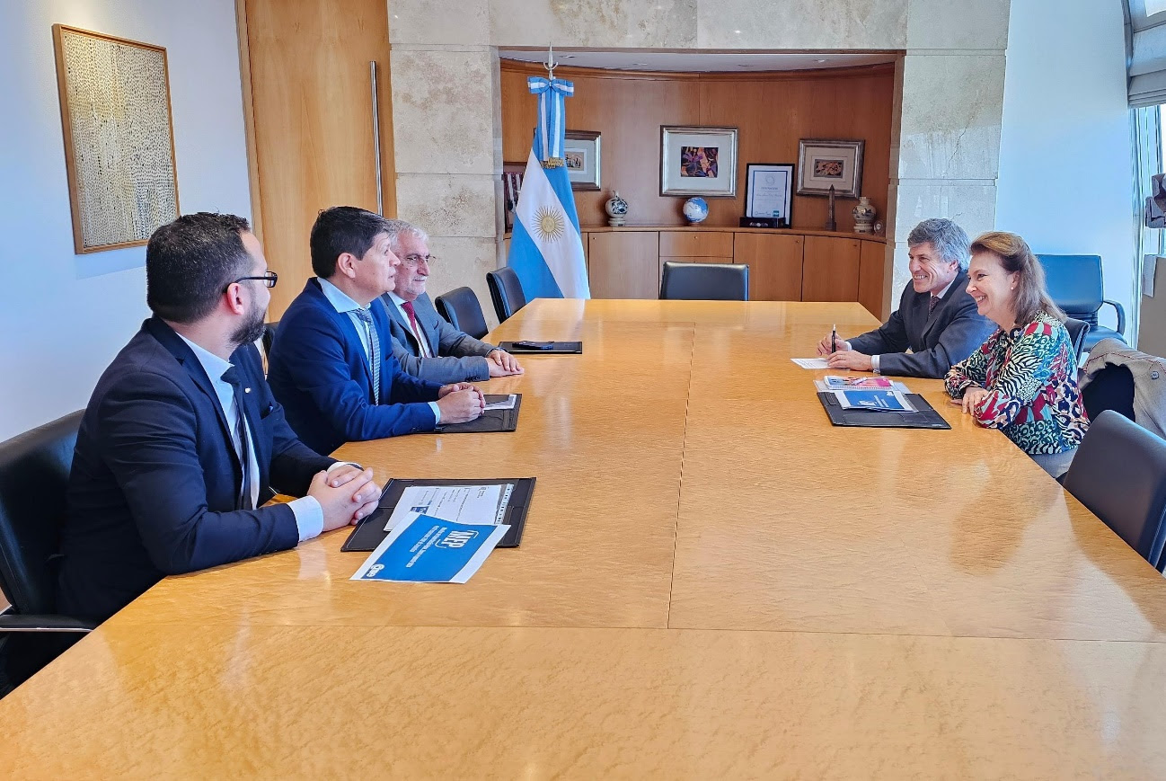 Además, los directivos de la entidad le presentaron a Mondino el Monitor de Exportación PYME, un indicador que analiza el desempeño de las pymes argentinas en el mercado internacional.