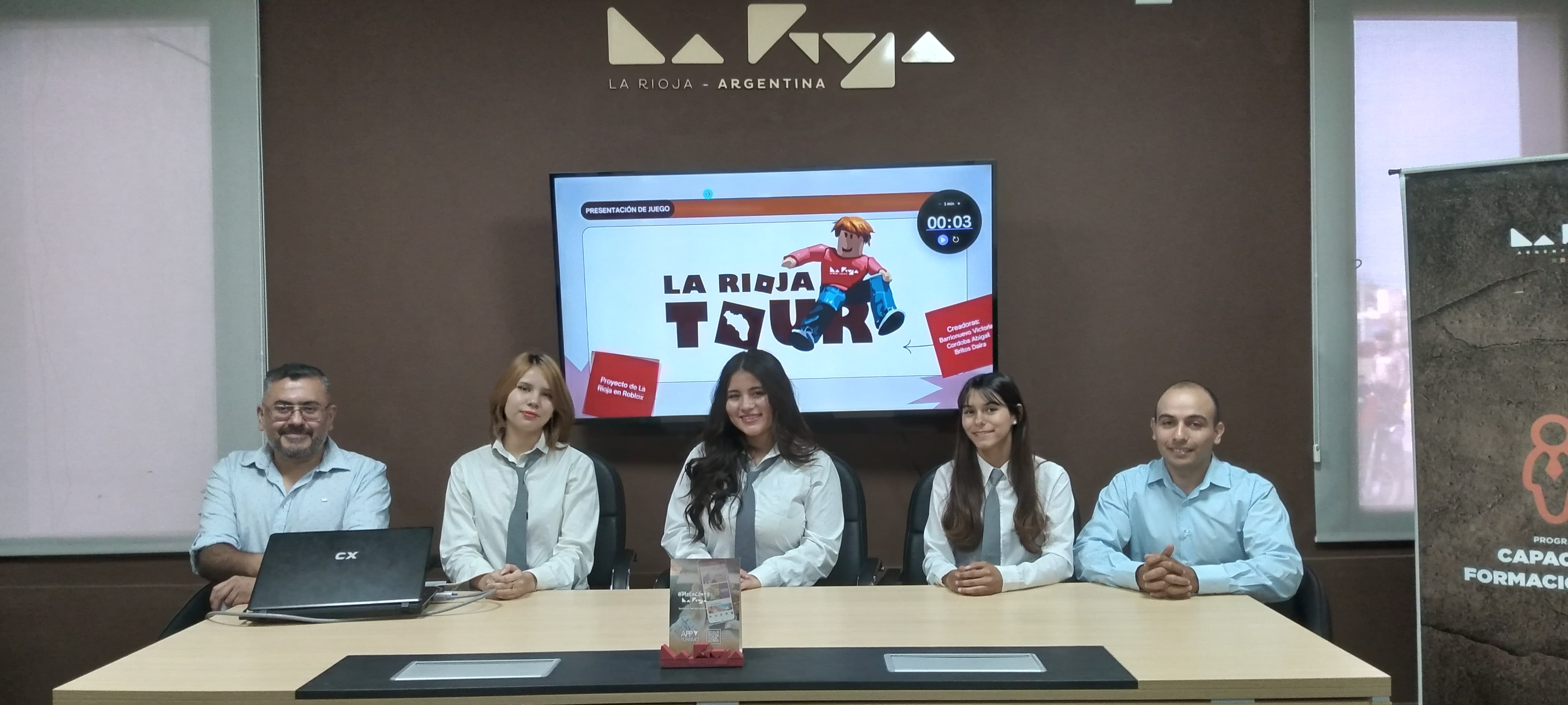 La Secretaría de Turismo de la provincia conjuntamente con el Polo Tecnológico, Ministerio de Educación, alumnas y autoridades del Colegio Comercial N°2 Alberto Lanzellotti hicieron la presentación de novedoso videojuego que ya está disponible en formato piloto en plataforma Roblox. El mismo- ideado y creado por tres estudiantes del establecimiento educativo- fue declarado de Interés turístico y prevé una segunda etapa incorporando como escenarios distintos atractivos del interior como Parque Nacional Talampaya, Los Colorados y Cable Carril, entre otros.