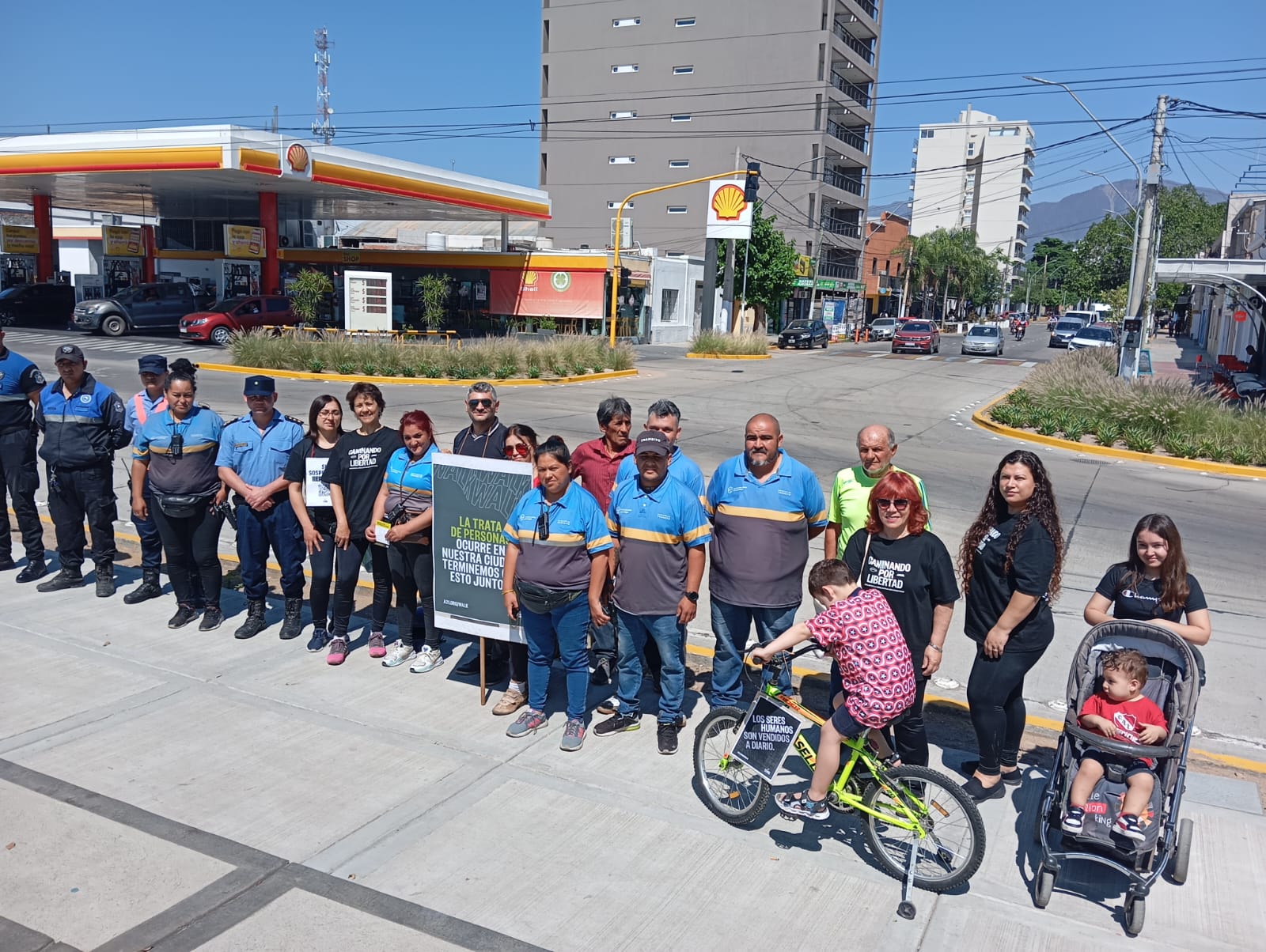 En esta intervención estuvieron presentes efectivos de la Policía de la Provincia, que acompañaron la movilización desde su inicio y estuvieron atentos a la charla. En ella, destacaron también la importancia del “personal de primera línea”, que refiere aquellas personas que pueden ser las primeras en detectar los casos de trata; efectivos policiales, médicos, enfermeros, trabajadores de aeropuertos y terminales, entre muchos otros que pueden llegar a tener un contacto directo con una víctima de trata y pueden ser los encargados de tomar esa primera línea de acción para el correspondiente auxilio.