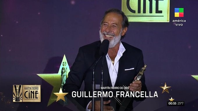 Cuando el reloj casi marcaba la 1 de la madrugada, Mariana Fabbiani y Benjamín Vicuña anunciaron al ganador del Martín Fierro de Oro. APTRA eligió a Guillermo Francella por su desempeño en la serie "El Encargado", que protagonizó durante tres temporadas y está en proceso una cuarta.