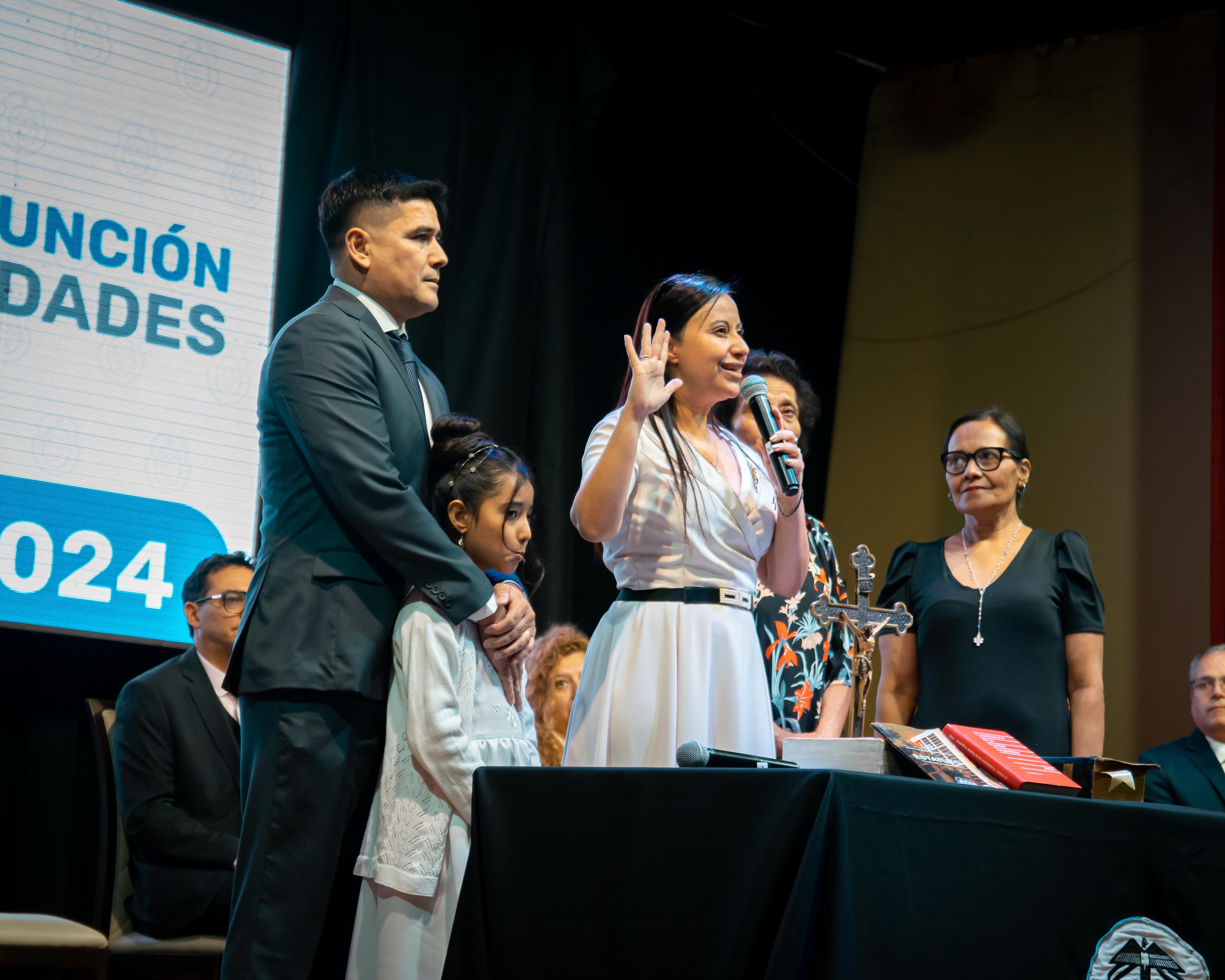 Este viernes por la mañana asumió como la nueva rectora de la UNLaR, Natalia Álbarez Gómez, junto al vicerrector, Luis Oviedo, en un acto que se llevó a cabo en la Sala Académica Oscar Quiroga Galindez. También juraron en sus cargos electos, los 10 decanos y decanas de Departamentos Académicos de las Sedes Regionales y consiliarios del Consejo Superior.