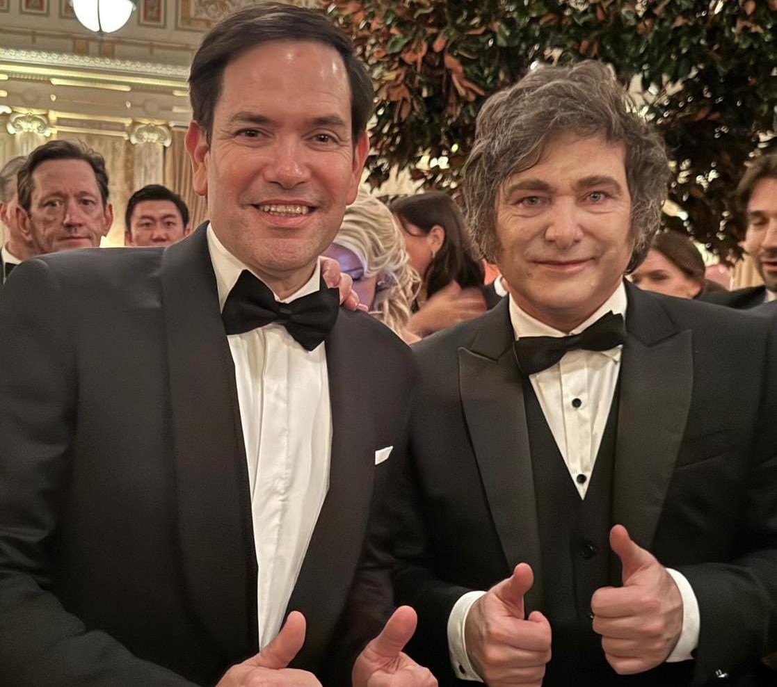 Del encuentro trascendió una fotografía en la que Milei y Rubio apuntan los pulgares para arriba, tal como acostumbra el jefe de Estado, que durante el viaje se ha tomado varias postales similares incluso con la directora del Fondo Monetario Internacional (FMI), Kristalina Georgieva.