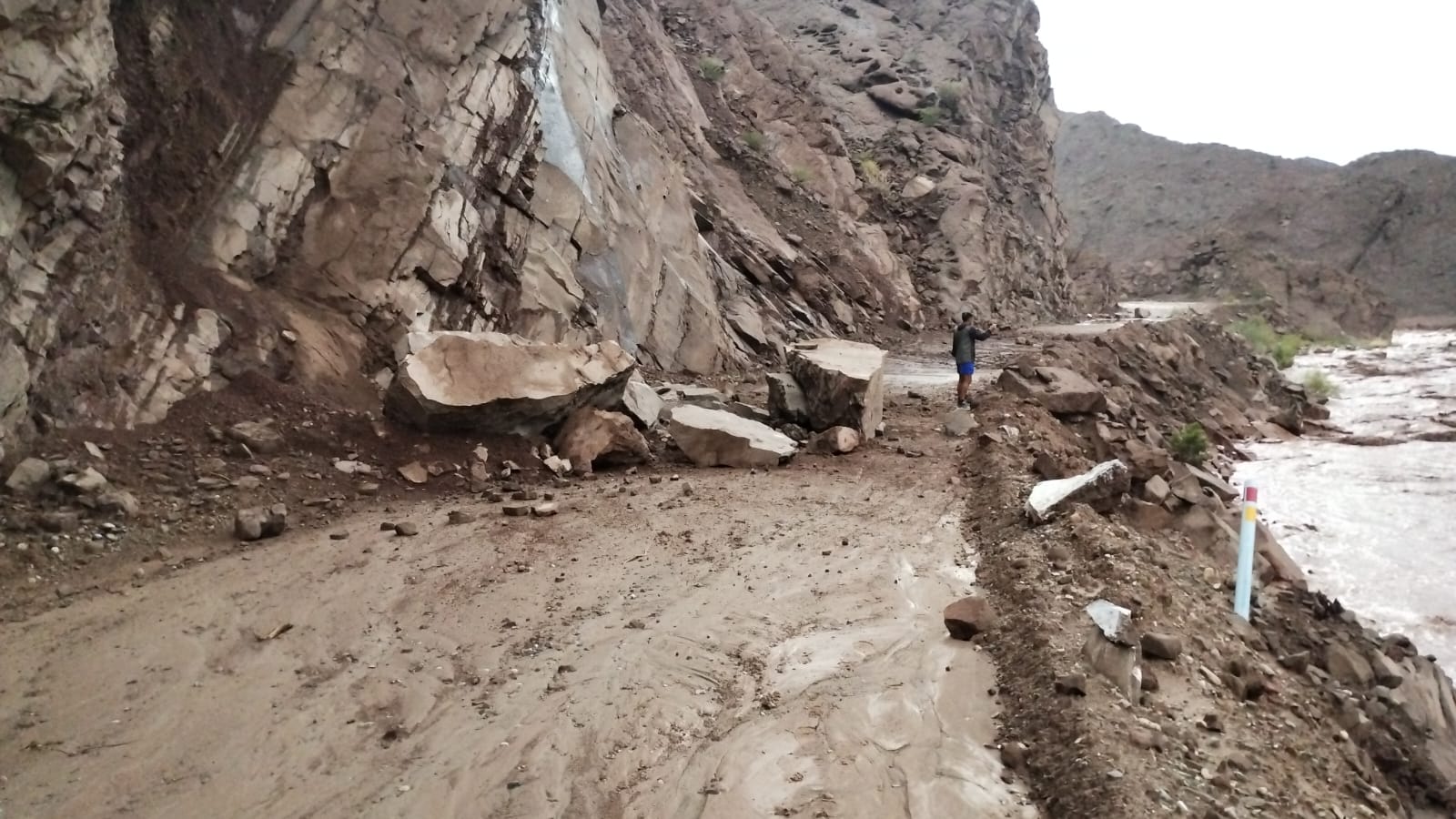 A su vez, recomienda no acceder a la zona de Pampa de La Viuda, por ruta N°73 debido a múltiples derrumbes en el sector.
