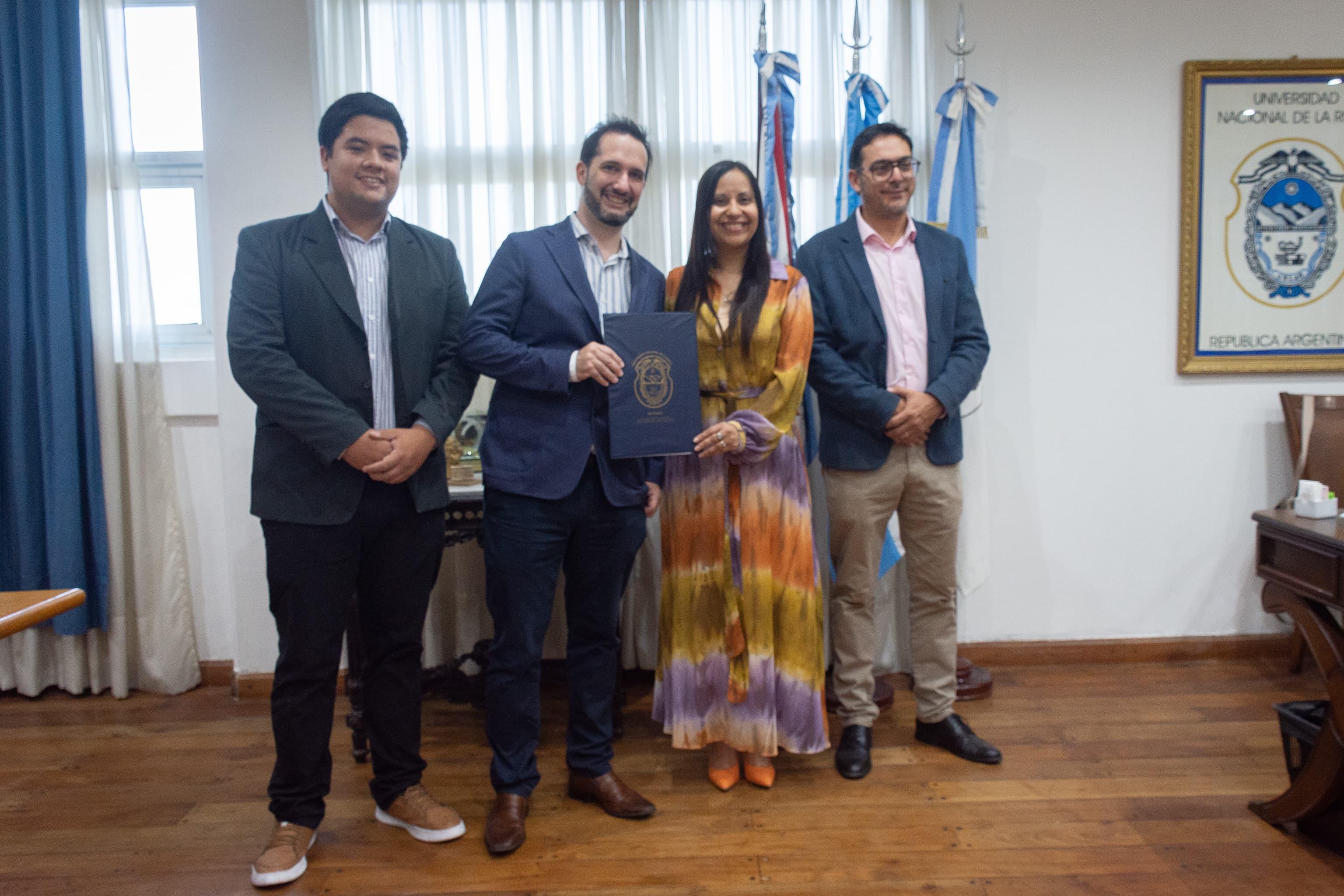 La firma de convenio fue presidida por la rectora de la Universidad Nacional de La Rioja, Natalia Álbarez Gómez, y el presidente de FLEDNI, licenciado en Psicología, Gabriel Ainciart, con la presencia del vicerrector, Luis Oviedo, y el secretario de Relaciones Institucionales, Isaías Díaz. La fundación oriunda de La Plata, fue creada hace tres años, cuenta con 20 profesionales y en actualidad trabajan en la expansión de la misma, y es lo que originó el convenio con la UNLaR.