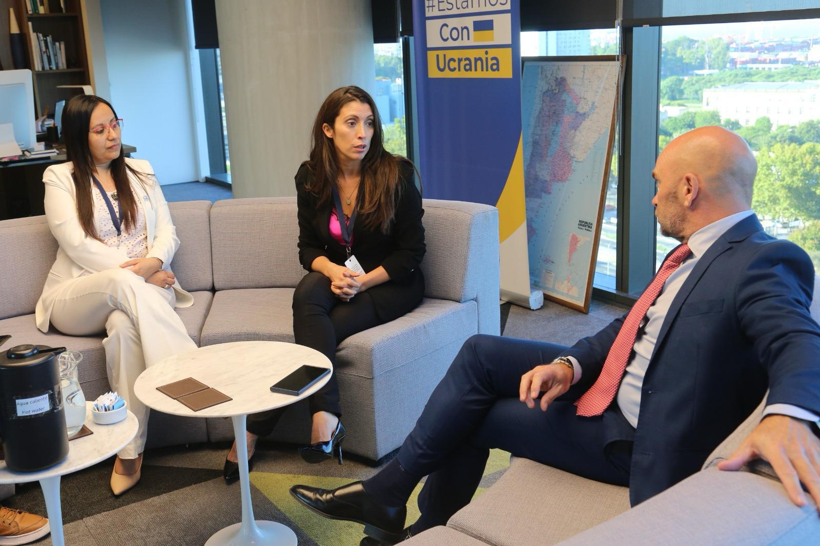 La rectora de la Universidad Nacional de La Rioja, Natalia Albarez Gómez, junto a la senadora nacional, Florencia López, visitaron la Delegación de la Unión Europea en Argentina, donde fueron recibidas por el embajador Amador Sánchez Rico. El encuentro tuvo como objetivo fortalecer la cooperación académica y avanzar en posibilidades de becas, programas de intercambio e investigación y diseños de doctorados conjuntos para que estudiantes de la UNLaR puedan formarse en países europeos.
