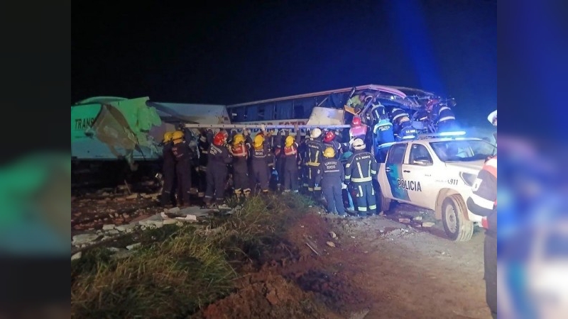 Las primeras informaciones señalan que el micro se dirigía hacía Buenos Aires y chocó de frente contra el camión que iba en sentido contrario.