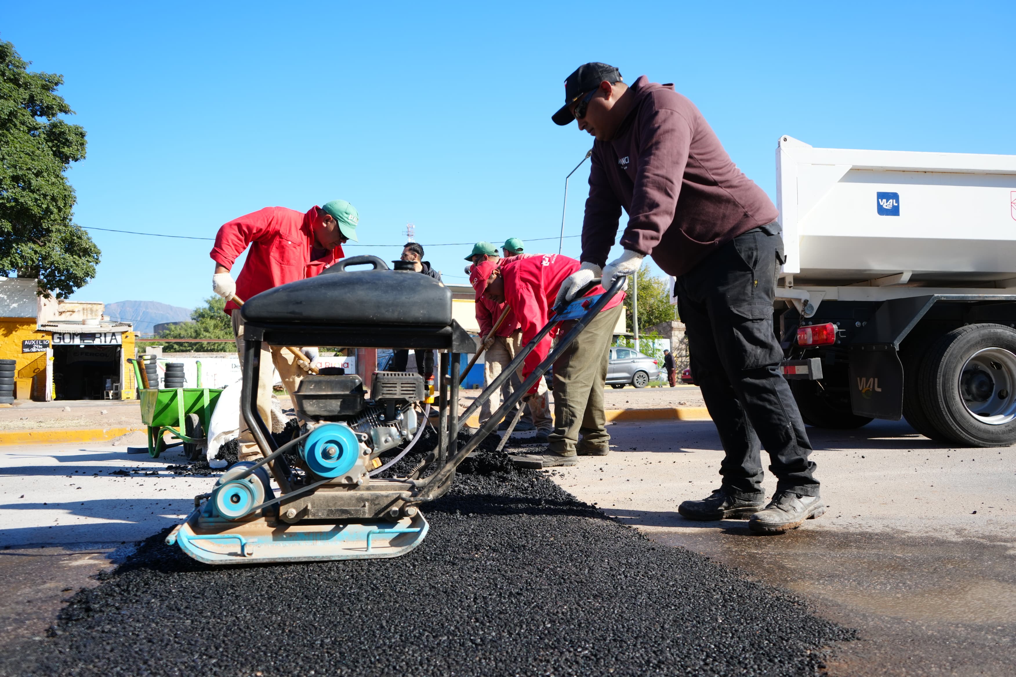 Para mejorar la transitabilidad y la seguridad vial, se llevó a cabo la reparación de una rotura que atravesaba la calzada de cordón a cordón. Los trabajos incluyeron el retiro del material suelto, el perfilado de los bordes, la compactación de la base y la posterior extensión de asfalto en frío.