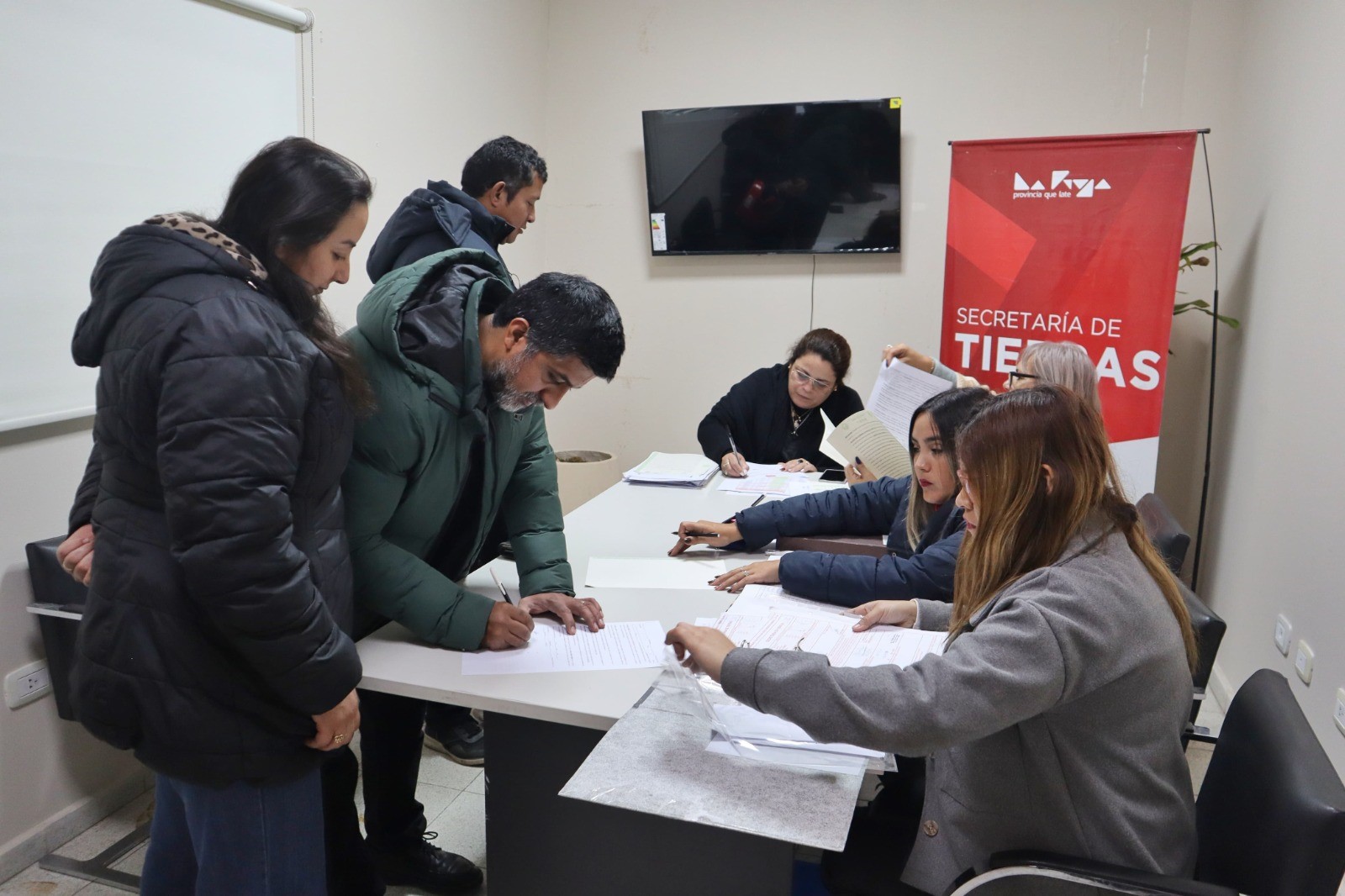 El acto administrativo se desarrolló el pasado viernes en las instalaciones de la Secretaría de Tierras, donde las familias se presentaron para concretar este paso clave hacia la seguridad jurídica de sus propiedades.