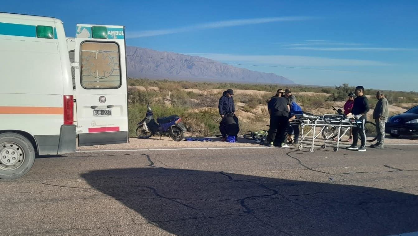 En la mañana de este sábado un motociclista y un ciclista protagonizaron una colisión en Ruta N° 75. Ambos fueron trasladados al hospital local con escoriaciones y lesiones a confirmar. Intervino personal policial y de salud.