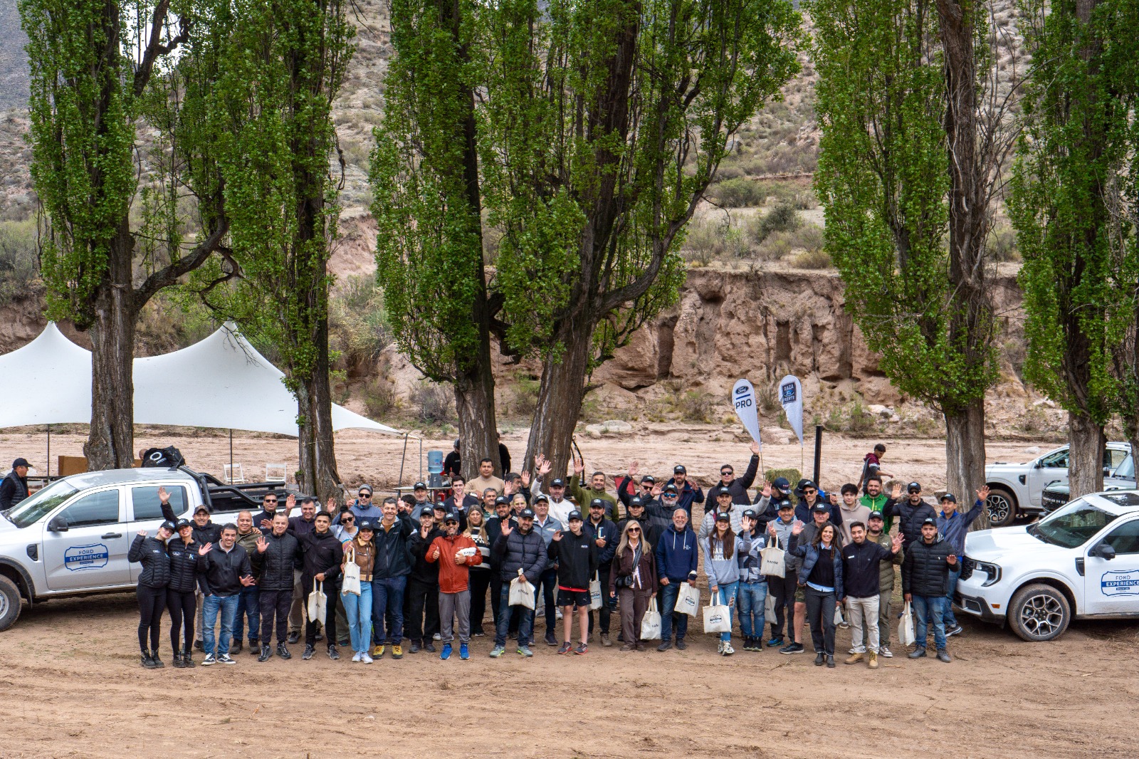 A partir de allí dio comienzo el recorrido, que fue un traslado en caravana en varias unidades de dos de los modelos de camionetas por excelencia de Ford, como lo son las Ranger y Maverick, con las que se transitaron hacia el circuito de Pampa de la Viuda, en un camino itinerante de, aproximadamente, 20 km. yendo siempre por la cuesta de ese tan maravilloso lugar, junto al lecho del río, hasta llegar a un “circuito” preparado especialmente para la ocasión. Ese trazado diseñado para este evento, fue el lugar específico donde todos los participantes pudieron llevar a cabo su correspondiente test drive con Ranger o Maverick, a elección, poniendo a prueba cada una de estas pick ups en un entorno controlado pero que permitía máxima exigencia para las unidades, en pos de demostrar las capacidades y potencialidades que ofrecen estos nobles productos de Ford.
