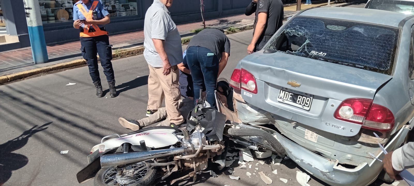 Un motociclista de 19 años sufrió fractura de muñeca izquierda y de rótula en la pierna izquierda tras un siniestro vial múltiple ocurrido en la mañana de ayer, en pleno centro de la Ciudad.