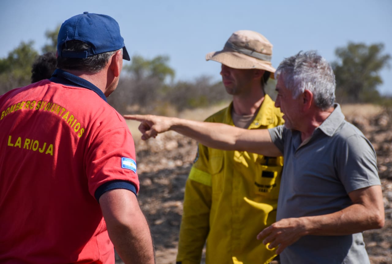 El intendente Armando Molina de la Municipalidad de La Rioja, visitó parte de la zona afectada por los recientes incendios en la Capital y acompañó al equipo de Protección Ciudadana en las tareas que realizan para combatir el siniestro.