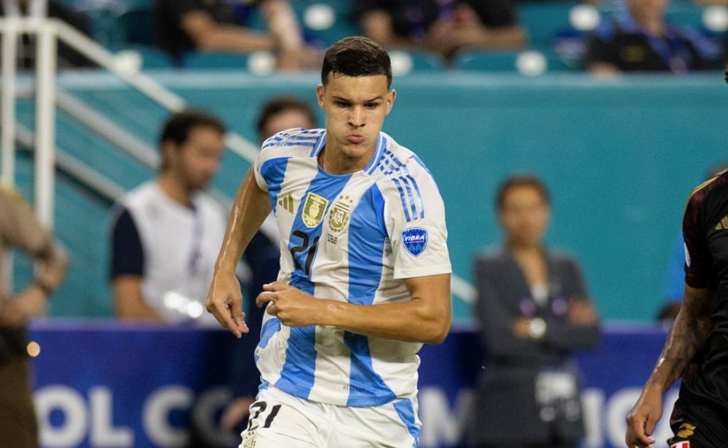 De todas formas, en 2024 debutó con la Selección argentina y fue campeón de la Copa América, jugando algunos minutos en el triunfo por 2-0 ante Perú, en la fase de grupos.