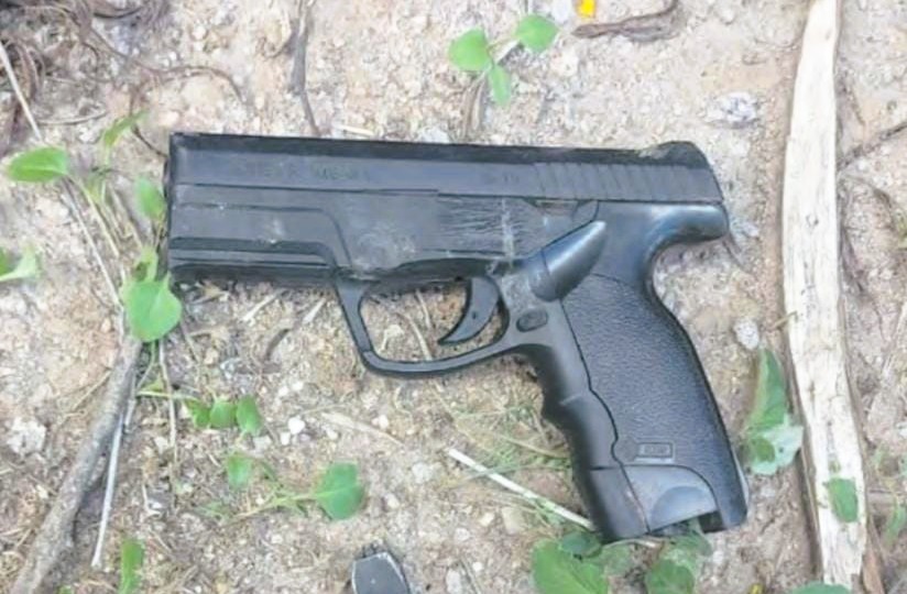 Al intentar entrevistarlos, los sujetos abandonaron el rodado y escaparon a pie. Durante la huida, uno de ellos fue momentáneamente demorado, produciéndose un forcejeo con un efectivo policial, logrando finalmente darse a la fuga. En ese contexto, los individuos se despojaron de una pistola de aire comprimido, similar a unos 9 milímetros, y de una remera azul, elementos que quedaron en el lugar.