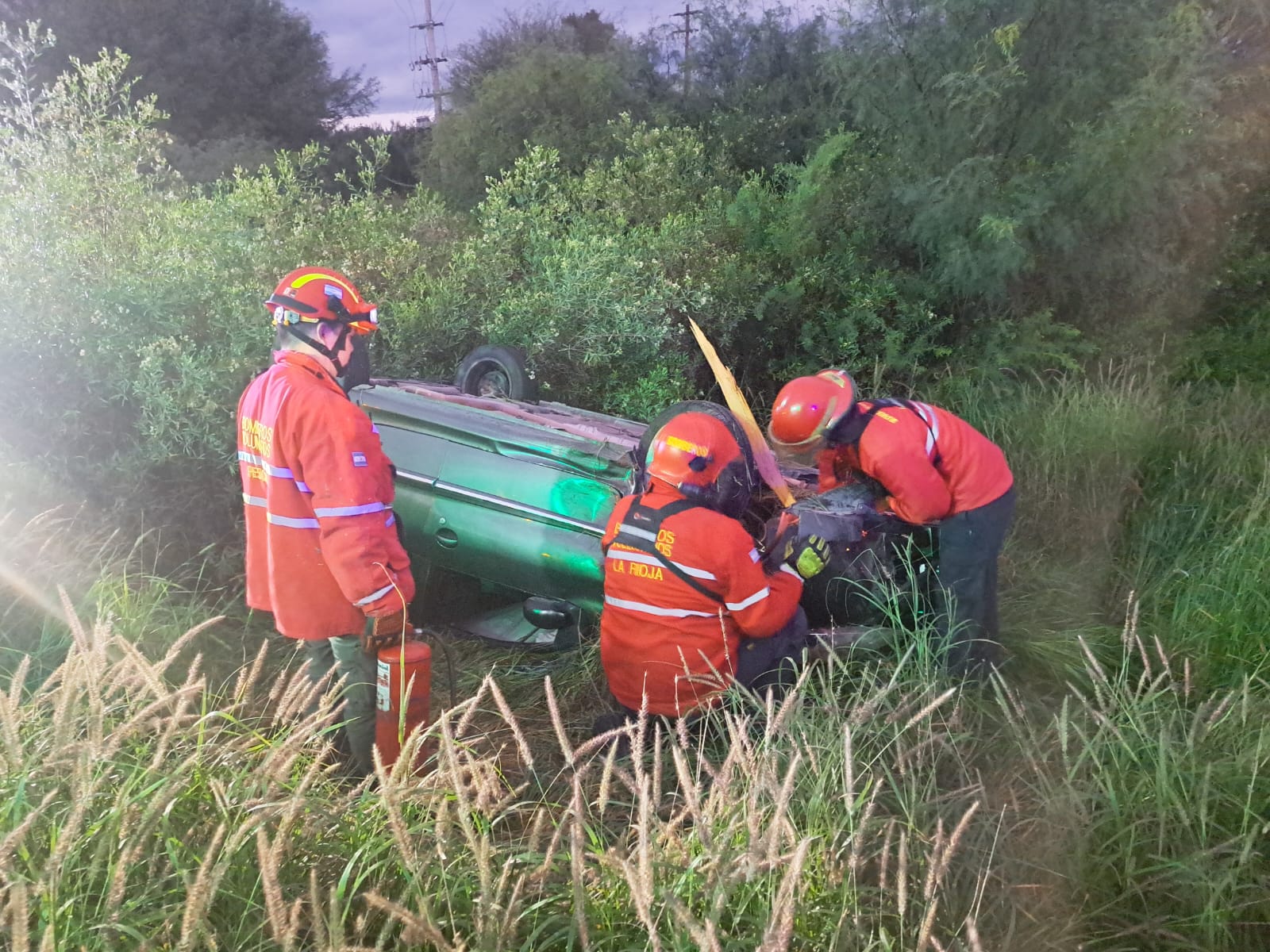 Pasadas las 05:56 de este domingo, se produjo un vuelco en Ruta Nacional N.º 38, extremo sur, pasando la zona la finca de Olmedo; el hecho fue protagonizado por Claudia Mariela Nievas, de 59 años, quien conducía un automóvil Peugeot 207.