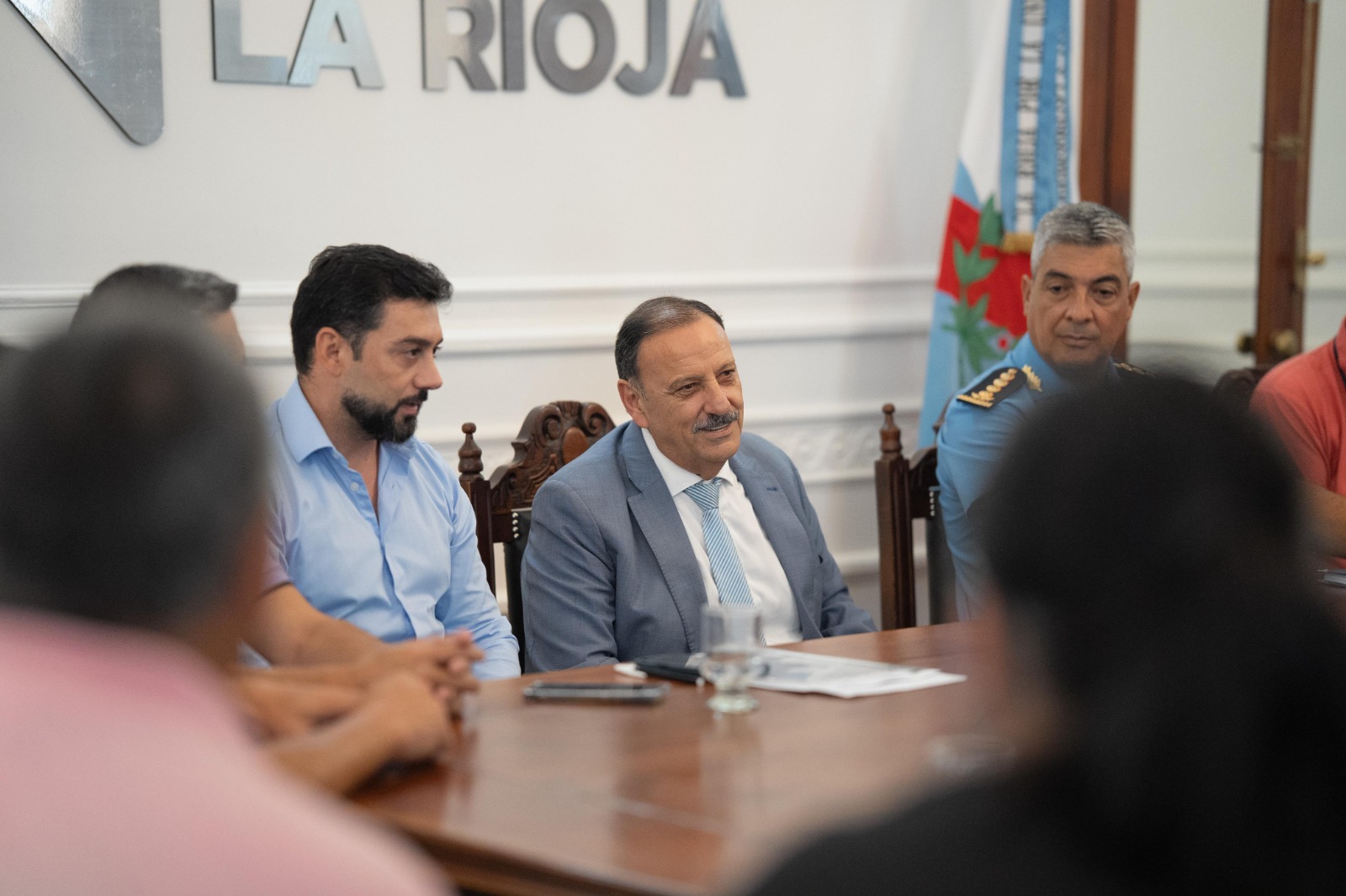 El gobernador Ricardo Quintela, junto al ministro de Seguridad, Justicia y Derechos Humanos, Miguel Zárate, se reunió en Casa de Gobierno con asociaciones de retirados y activos de la fuerza de seguridad para discutir sus necesidades y expectativas. Durante el encuentro, las asociaciones destacaron el compromiso del mandatario provincial de atender inquietudes y analizar un posible aumento salarial en un contexto financiero complicado.