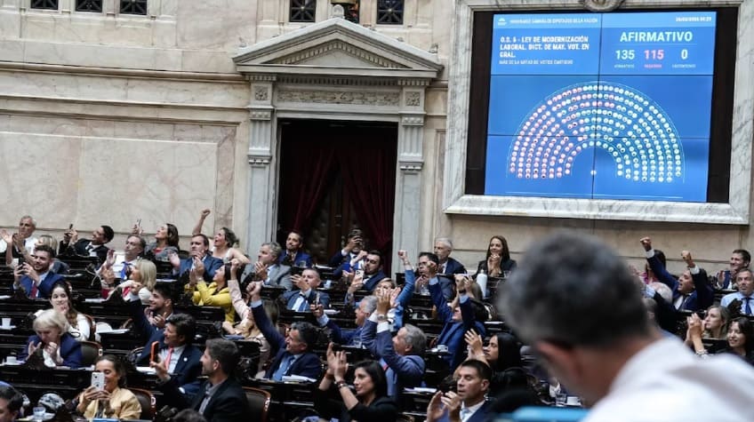 En una sesión extensa con ribetes escandalosos, en medio de movilizaciones en todo el país y un paro general de la CGT, el oficialismo logró aprobar en la Cámara de Diputados la reforma laboral y ahora el proyecto será remitido al Senado para analizar las modificaciones aplicadas en la redacción.