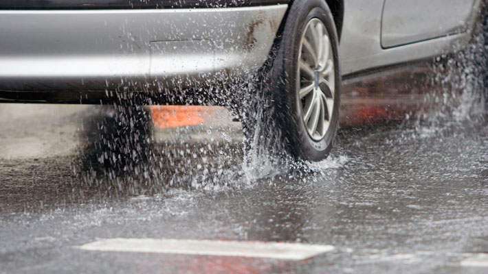 Avenida 1° de Marzo y colectora de Clodulfa Ozán, donde se producen anegamientos temporales y presencia de barro que reduce la visibilidad de la señalización horizontal.