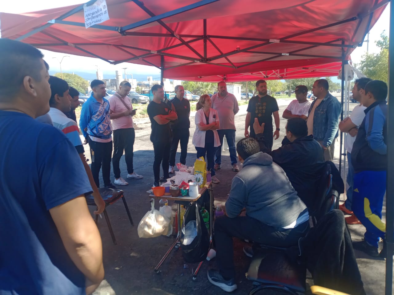 Este viernes miembros del gremio Aproslar y Fesprosa junto a la CTA se acercaron al lugar de acampe de los empleados de Seguridad que prestaban servicio en el hospital regional de La Rioja.