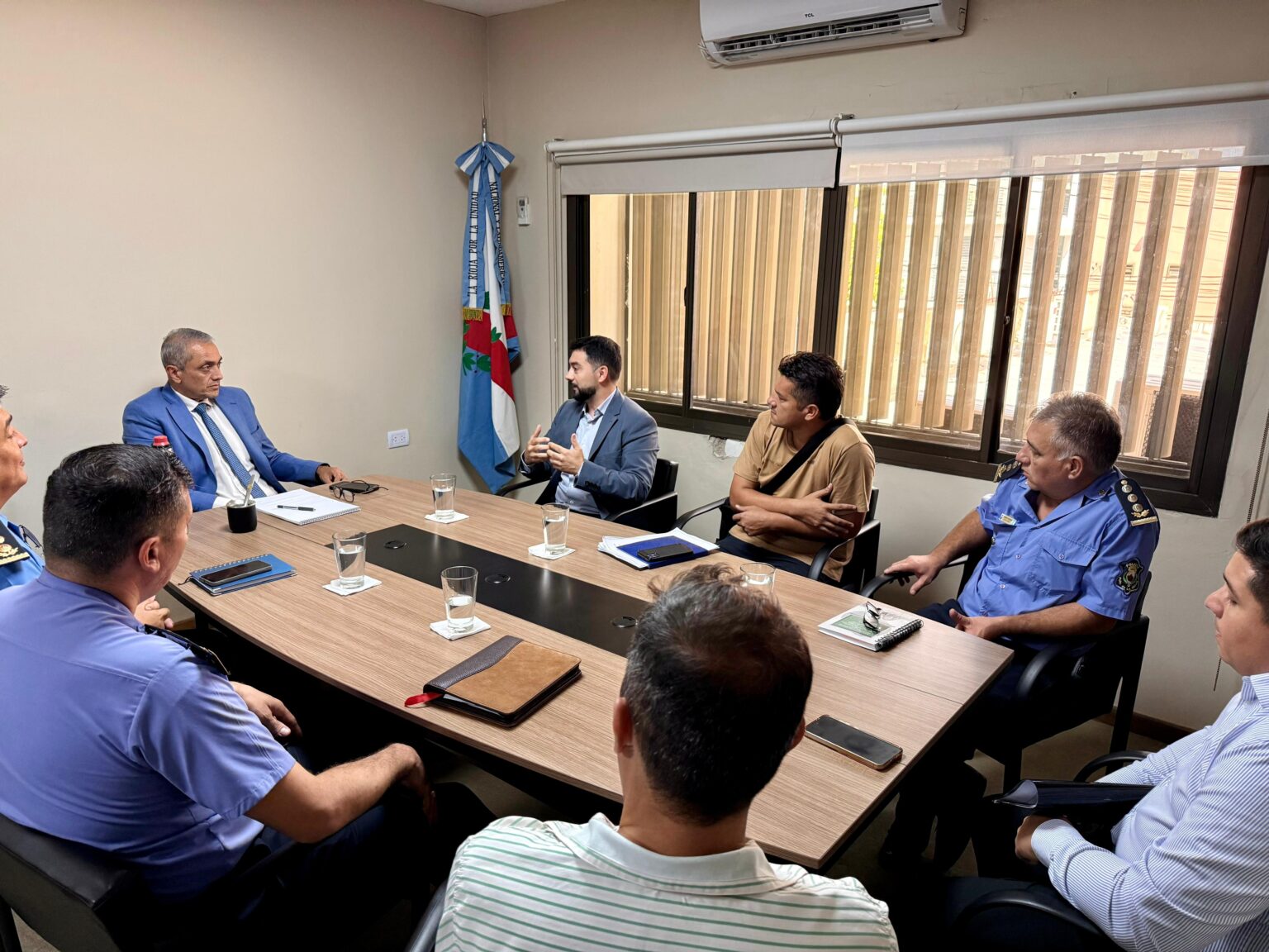 De la reunión también participaron autoridades del área de investigaciones y delitos complejos, entre ellos el jefe de Delitos Complejos, comisario inspector Santiago Vega; el subdirector de Investigaciones, comisario Marcelo Peralta; y el subdirector de Seguridad, comisario Dalmiro Escudero.