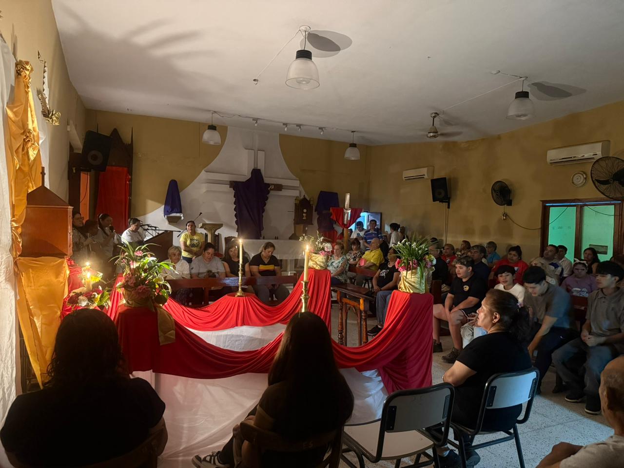 Este jueves santo, la celebración comenzó a las 20 con misa en la comunidad Medalla Milagrosa, barrio Santa Justina, a cuyo término se trasladó el Santísimo en procesión hasta la sede parroquial del Espíritu Santo en el barrio Ferroviario, donde a las 22 comenzó la vigilia con el templo en penumbras, en silencio, sin velas, cruces tapadas, el sagrario vacío porque Jesús ha sido detenido, un ambiente que predispuso a las familias, niños y niñas de la catequesis, fieles y vecinos a un momento de reflexión, penitencia y oración.