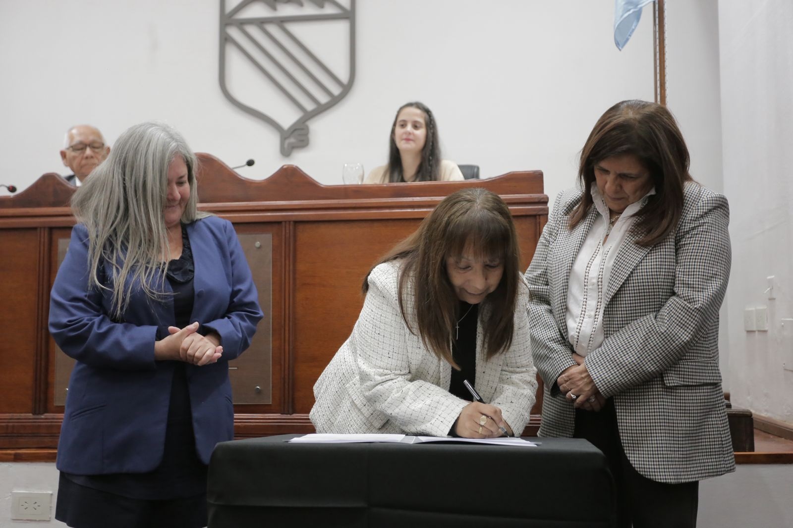 En el mismo ámbito, se firmó un convenio de cooperación entre el Concejo Deliberante y el Instituto Superior en Formación Docente y Técnica “Prof. Alberto Crulcich”. El acuerdo permitirá que estudiantes avanzados realicen prácticas preprofesionales en el marco del programa “Soy Concejalito por un Día”, que incluye formación en oratoria y ceremonial.