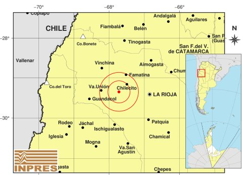 Según el INPRES, el movimiento telúrico fue a las 9:41 de este jueves en el territorio riojano. Su epicentro fue a 31 km al Suroeste de la ciudad de Chilecito.
