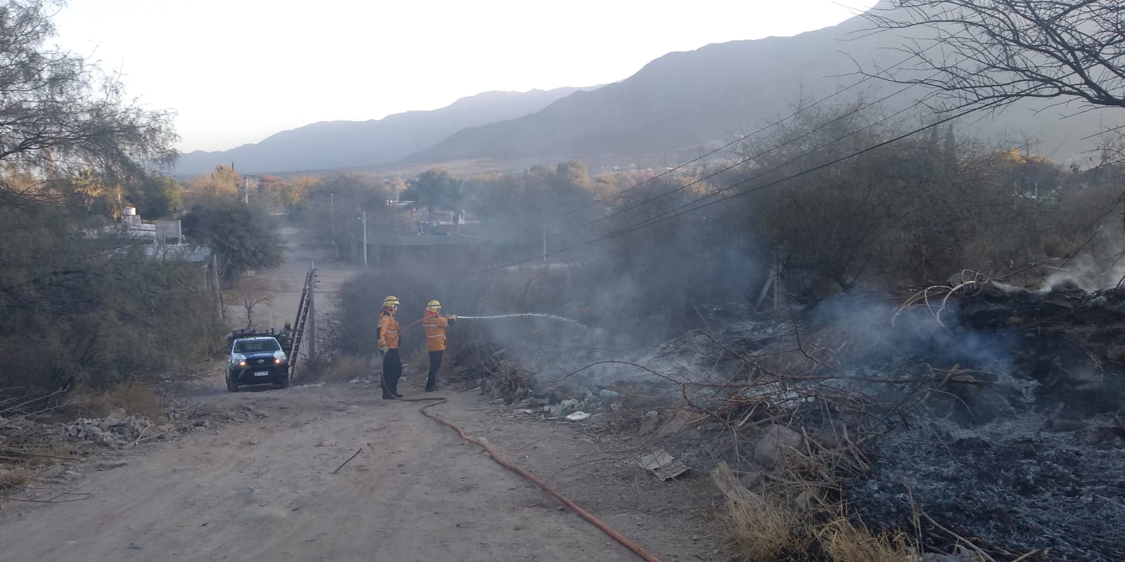 Por lo cual realizaron tareas de extinción, se visualizan cables del tendido eléctrico, que aparentemente habrían sido alcanzado por el fuego y provocando cortocircuito.
