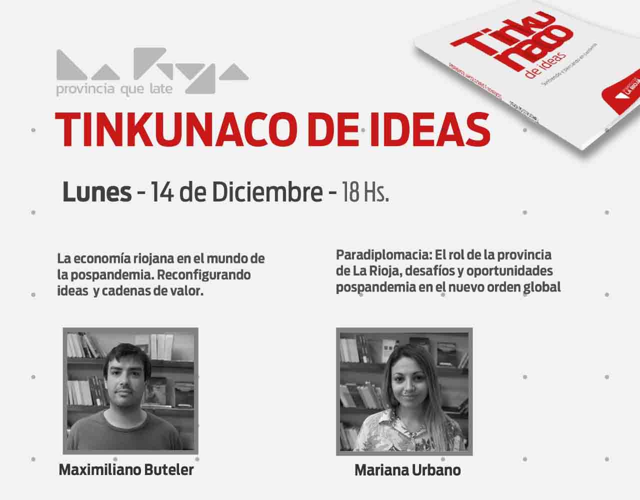 El Gobierno de la Provincia invita a participar a través del Livestream desde la Fan Page de la Secretaría de Comunicación y Planificación Pública, de una nueva edición del conversatorio de "Tinkunaco de ideas. Sintiendo y pensando en pandemia", que tendrá lugar hoy, 14 de diciembre, a las 18 horas.
