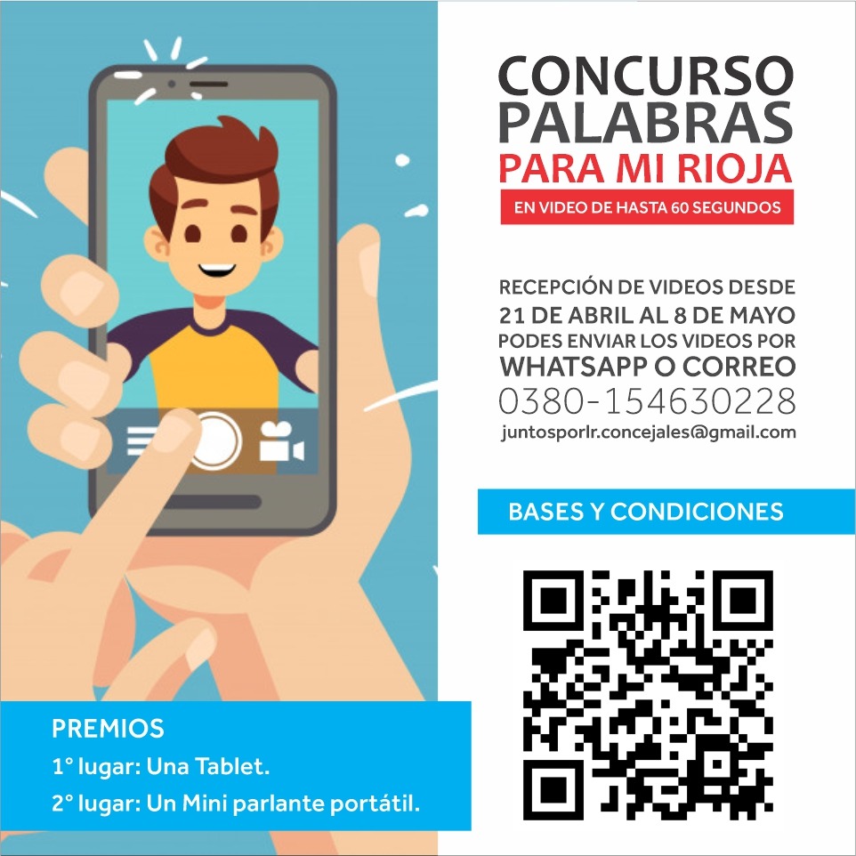 Este concurso está destinado a niños y niñas de hasta 13 años de edad los cuales deberán grabar un video con un tiempo máximo de 60 segundos, en el cual reciten poemas, poesías, versos cuentos o fragmentos de canciones, propios o ajenos, los cuales sean relativos o hagan mención a La Rioja, con el objetivo de promover y difundir la escritura en la niñez, e invitarlos/as a que, con sus palabras, expresen lo que sienten, piensan y perciben sobre nuestra ciudad, nuestro suelo, nuestro hogar común, sus paisajes, historia y los grandes e ilustres personajes de nuestra tierra.