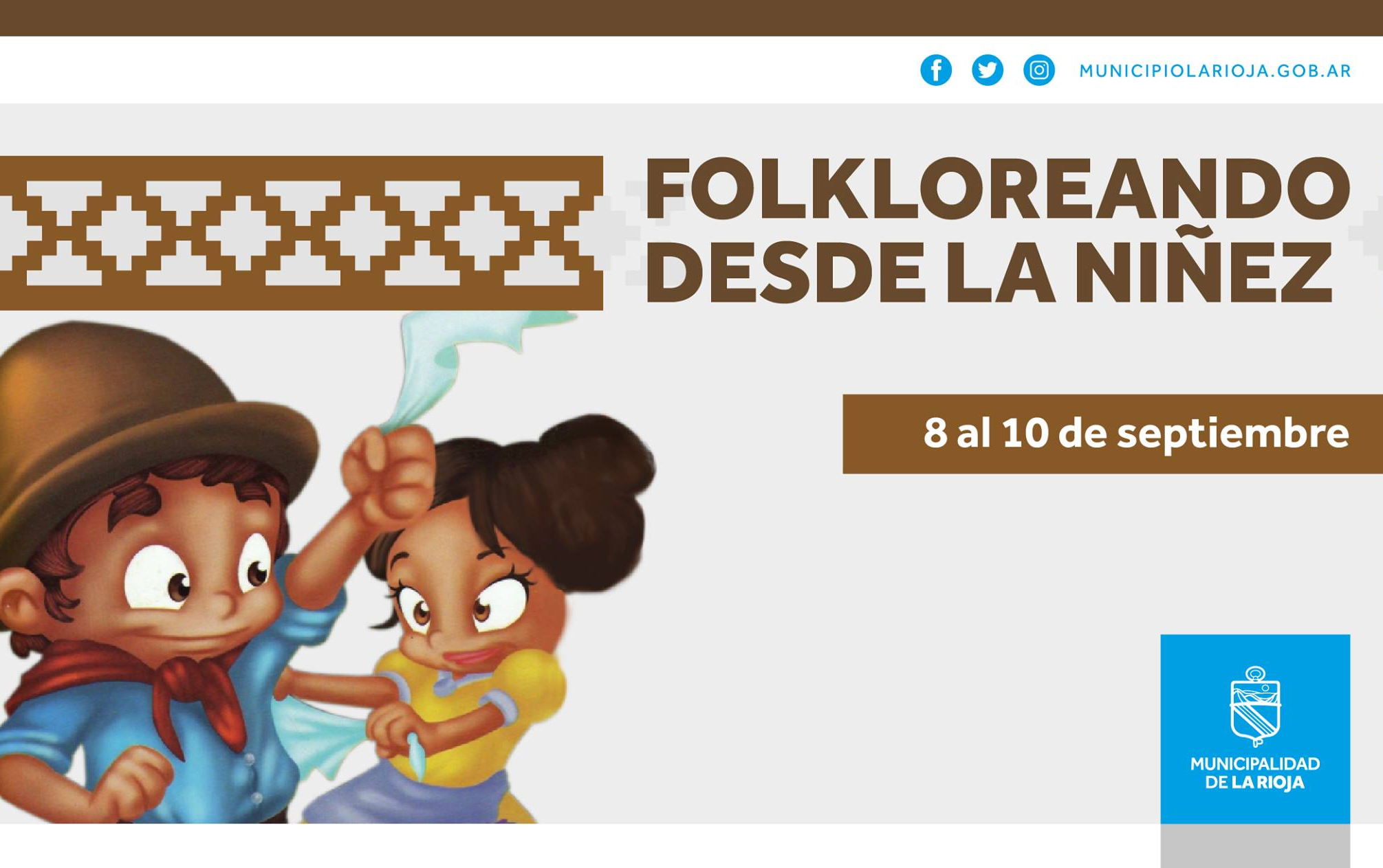 La Municipalidad de La Rioja a través de la Dirección y el Departamento de Folklore, dependientes de la Subsecretaría de Cultura, emprende el encuentro virtual de danza Folkloreando desde la Niñez que se realizará los días 8, 9 y 10 de septiembre.