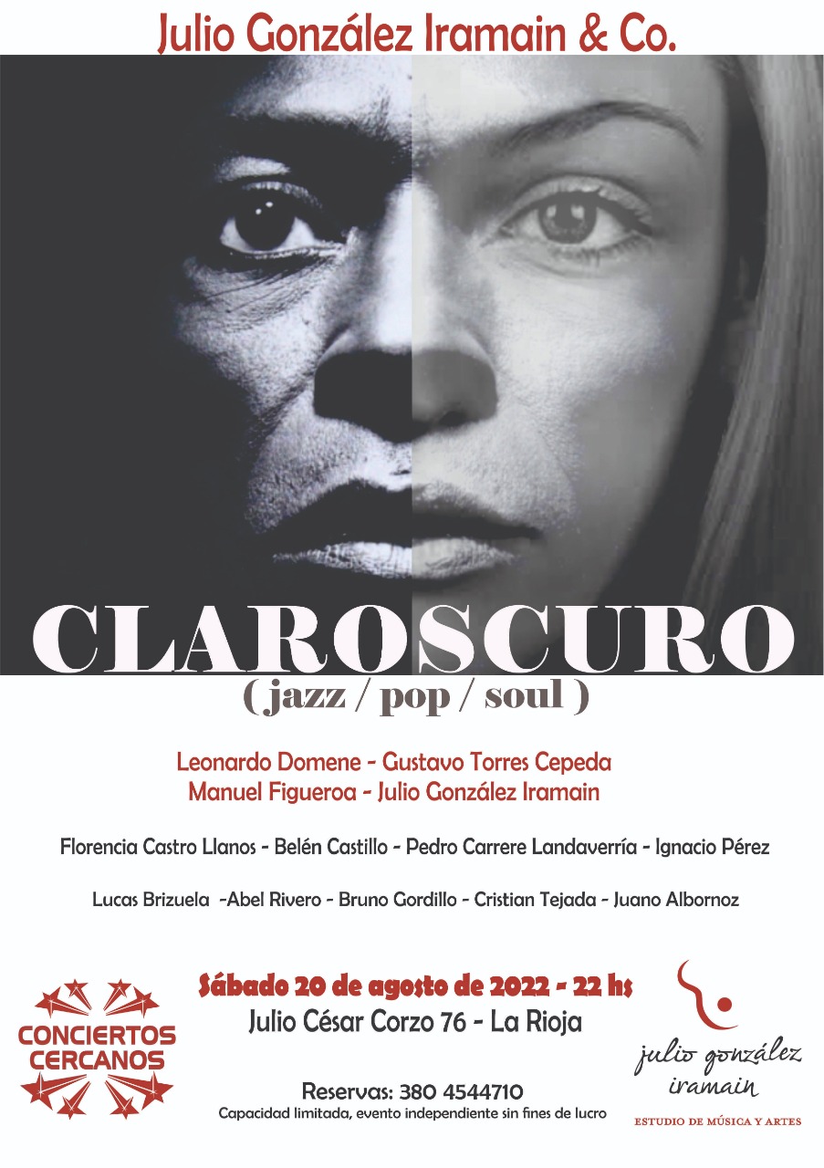 Este sábado 20 de agosto Julio González Iramain & Co. presentará su espectáculo Claroscuro, un homenaje a la música afroamericana con obras de jazz, soul y pop. El concierto se realizará a partir de las 22 en la sala de conciertos del estudio Julio González Iramain, Julio César Corzo 76.