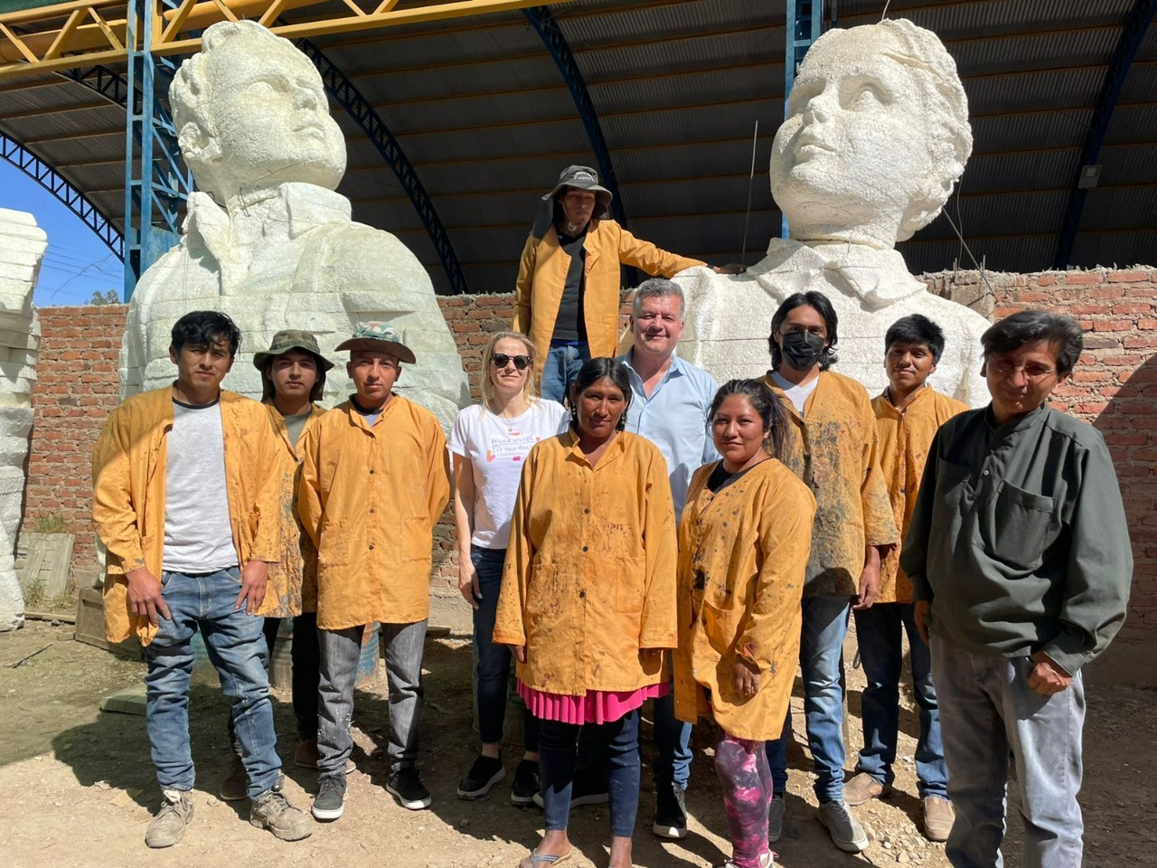 Como parte de la reivindicación histórica a la Maestra de la Patria, encarada por el Gobierno de la Provincia, avanza a paso firme la nueva creación del monumentalista boliviano. El ministro Gustavo Luna visitó el atelier de Cochabamba, donde la obra lleva un avance del 70 por ciento gracias al trabajo de un equipo de 15 personas.