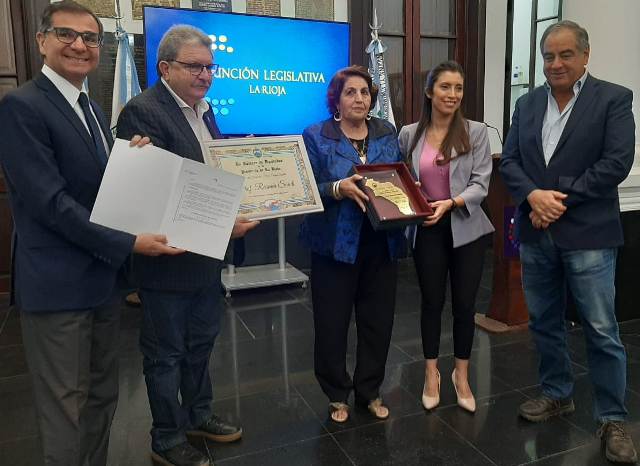 CHEPES (C). La Cámara de Diputados otorgó a la escritora de Rosario V. Peñaloza, profesora Rasmia Saddi la distinción de Ciudadana Destacada, Monseñor Enrique Angelelli, por su trayectoria en el campo cultural, político y Social..