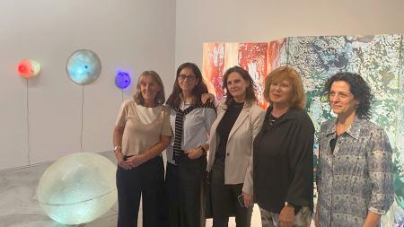 En ese mismo diálogo está la mirada distópica de Aranovich -la artista invitada- con sus paisajes contenidos en "bioferas" como las denomina, o los homenajes implícitos de Senderowicz donde vuelven a aparecer las personas en un particular biombo, así como las hojas entre llamas de "Todos los fuegos el fuego I" (1996) de Josefina Robirosa (1932-2022), de la serie de los bosques en un título que remite a Julio Cortázar. Una pintura que desde la distancia cronológica acompaña ese diálogo estético no exento de tensiones, entre las seis artistas.