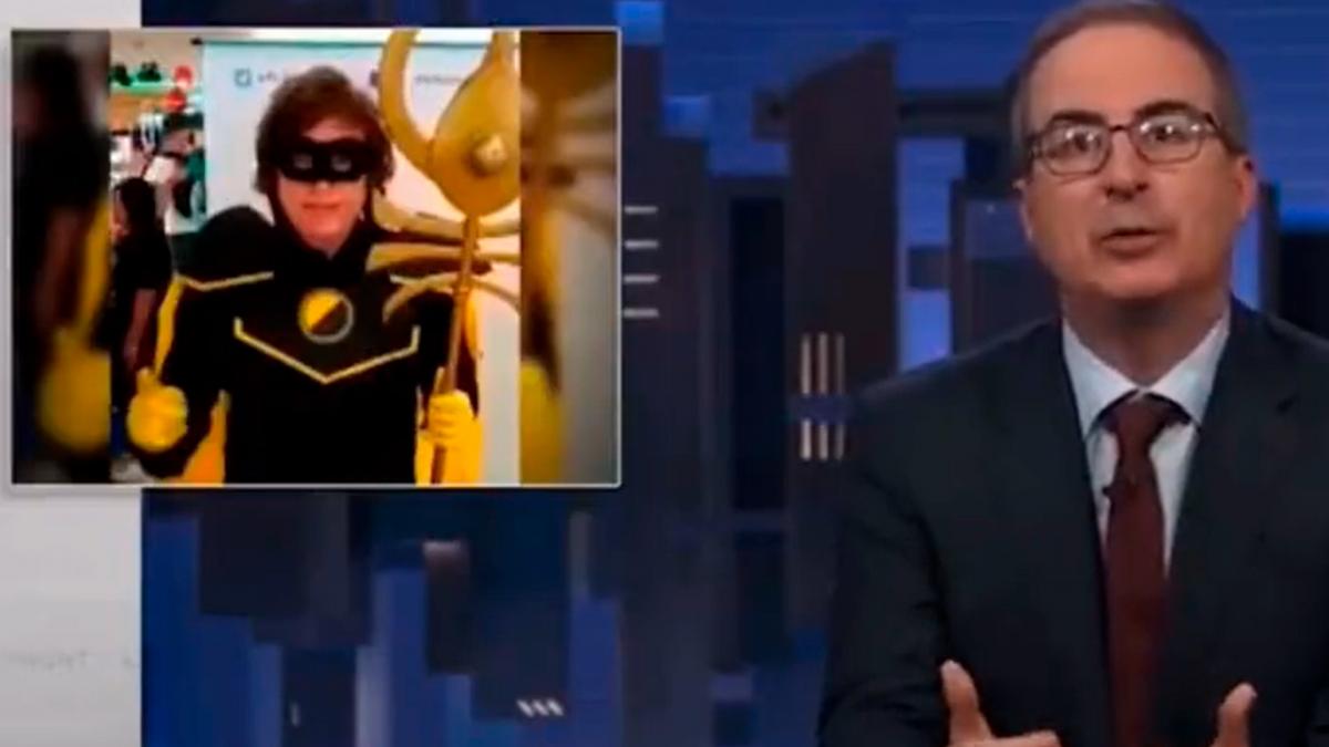 Para presentar al candidato argentino a la audiencia estadounidense, Oliver mostró una imagen de Milei con un disfraz al estilo cosplay de superhéroe "General Ancap" (abreviatura de anarcocapitalista). El conductor remató con que "Milei es un montón" y calificó como "malas" sus ideas.