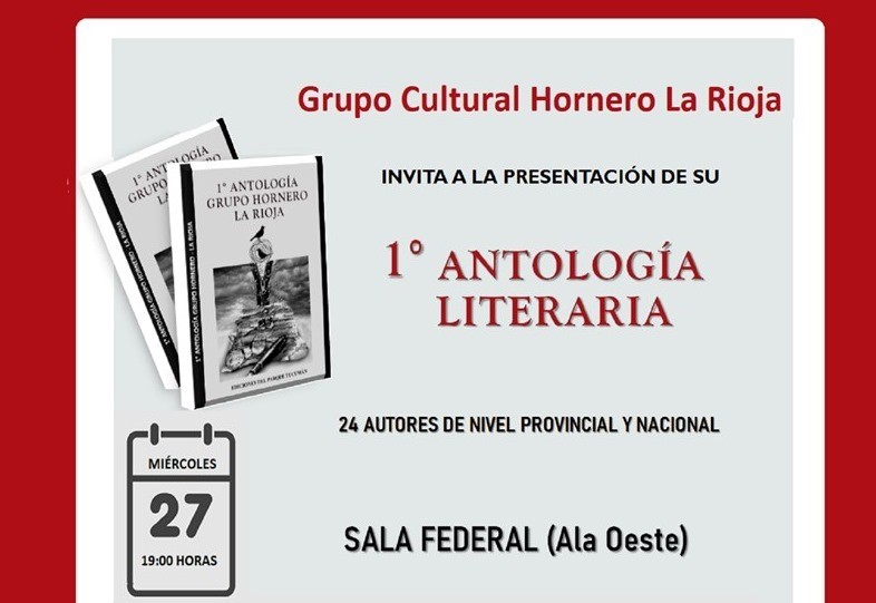 El grupo cultural y literario Hornero presentará, en la tarde de este miércoles 27, a las 19, su primera antología con textos de 24 autores locales y nacionales. El acto será en la Sala Federal (ala oeste), del Paseo Cultural a las 19 horas y la obra literaria incluye a 24 autores de nivel provincial y nacional.
