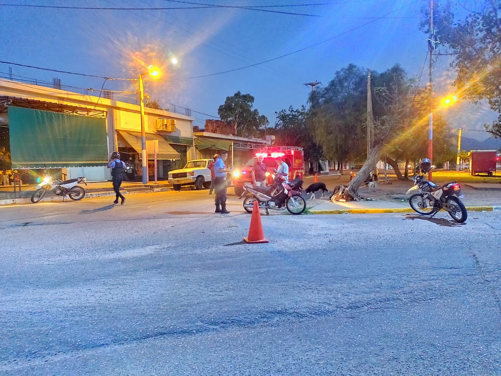 El siniestro ocurrió a las 05:52 de este jueves por Madre Teresa de Calcuta y Avenida San Nicolás de Bari, donde por causas que se tratan de establecer se produce una colisión entre una motocicleta Motomel blitz 110cc al mando de la Sra. Marcela Torres de 41 años, y otra motocicleta Motomel blitz 110cc al mando del Sr. Marcelino Gerardo Cuellia de 56 años.