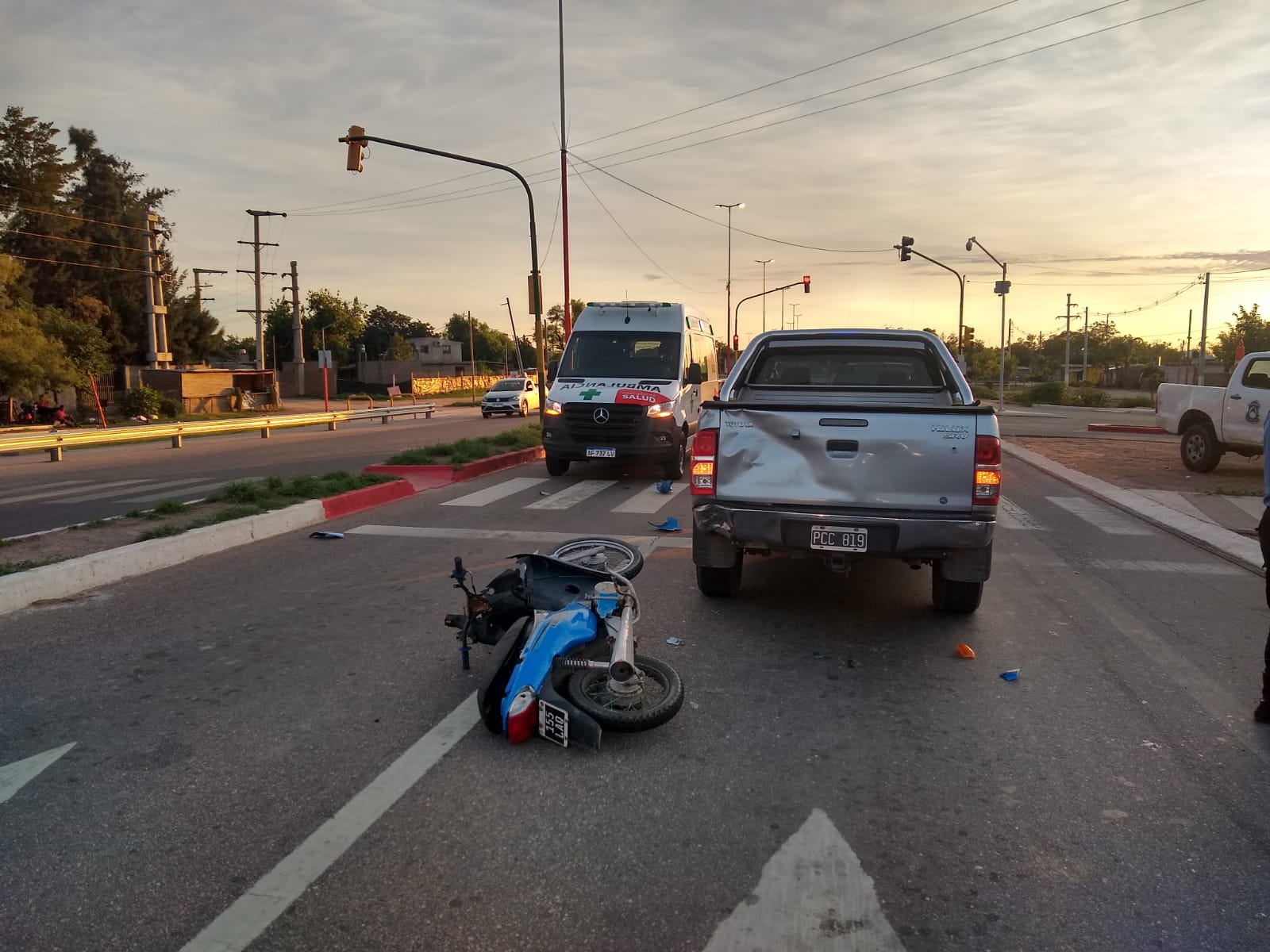 El siniestro vial ocurrió a las 06:33 de este 30 de diciembre en la ciudad de la Rioja por las avenidas Circunvalación y del Sol. Giuliano Nahuel Pereyra de (20), se dirigía en una motocicleta Corven Energy de 110 cc y chocó con la parte posterior a una camioneta Toyota Hilux al mando de Pedro Rearte Tagle de (59). El joven resultó con traumatismo en miembro inferior derecho.