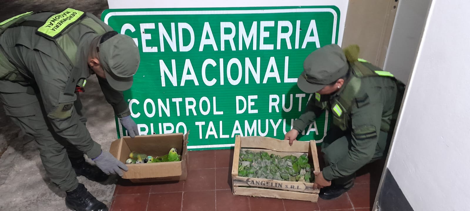 El operativo tuvo lugar ayer, en el marco de los diferentes controles que realiza los efectivos de Gendarmería y en este caso el de proteger el medio ambiente y la fauna silvestre. El hecho ocurrió en la posta de Talamuyuna que, al requisar un vehículo que era conducido por un mayor de edad, detectaron 45 cotorras y 5 loros habladores chaqueños. Los mismos se encontraban dentro de una caja de madera y la otra de cartón, para su comercialización. El conductor del rodado procedía desde La Rioja con destino a San Juan.